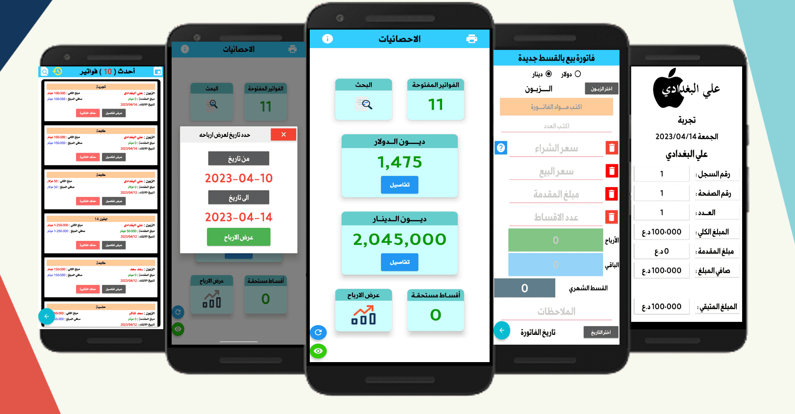 يمكنك بضغطة زر تحديد الارباح بتاريخ معين ليوم او اسبوع او شهر او سنة وطباعة التقرير او مشاركته على برامج التواصل.